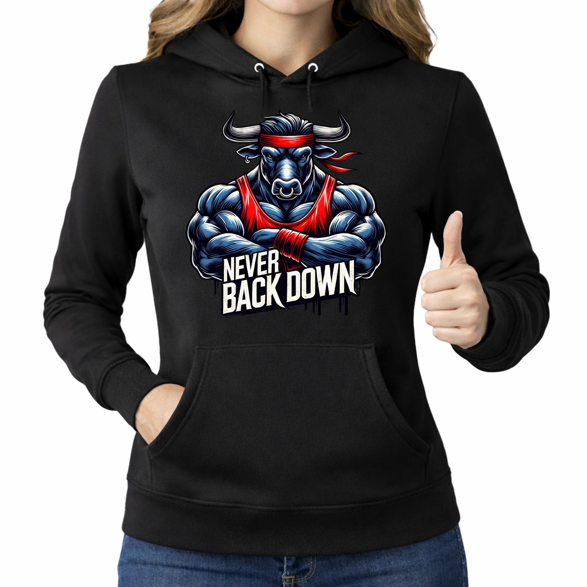 Bluza z nadrukiem damska z kapturem czarna 290g