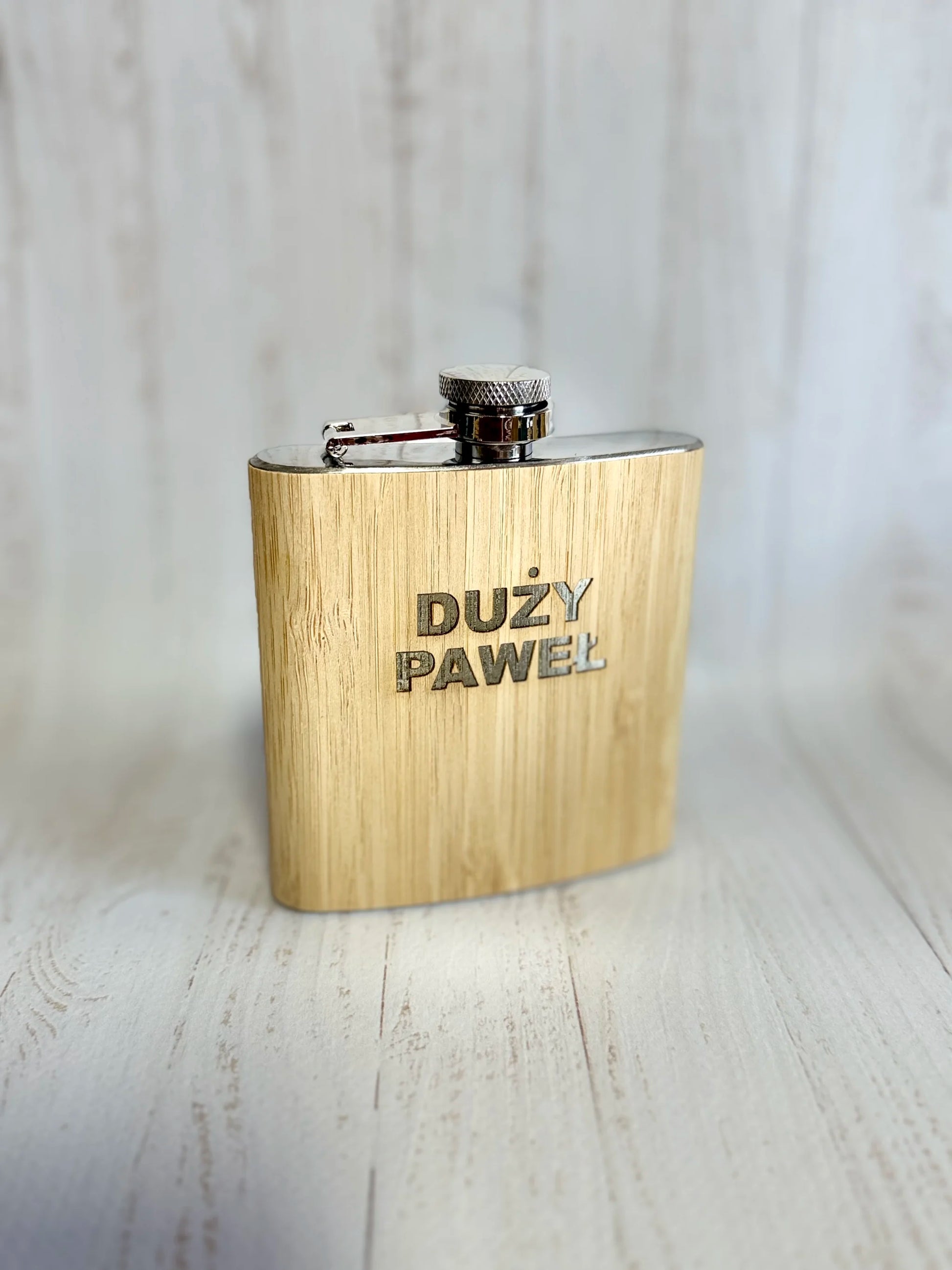 Piersiówka bambusowa z grawerem na prezent