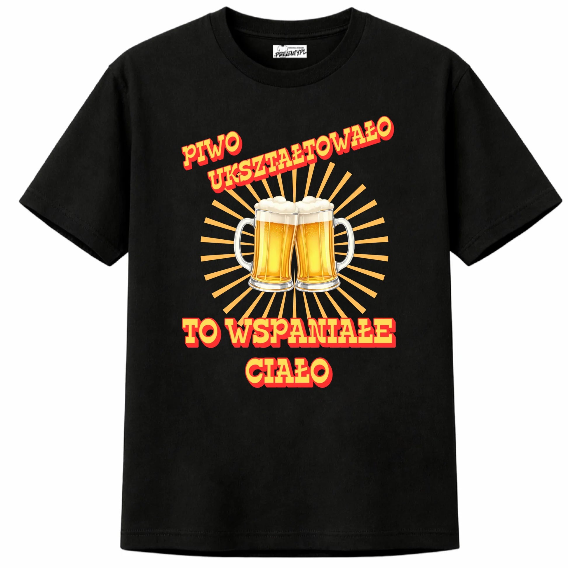 Prezent dla piwosza koszulka męska z nadrukiem piwo ukształtowało to wspaniałe ciało