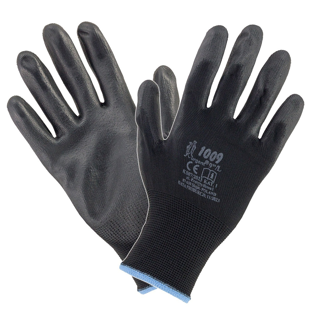RĘKAWICA OCHRONNA. WYKONANE Z POLIESTRU, NA CZĘŚCI CHWYTNEJ POWLEKANE POLIURETANEM, ZAKOŃCZONE ŚCIĄGACZEM. ROZMIAR: 7-10 PAKOWANIE: KARTON/TORBA ( 12/240 ) - KAŻDA PARA PAKOWANA W OSOBNĄ W TOREBKĘ |